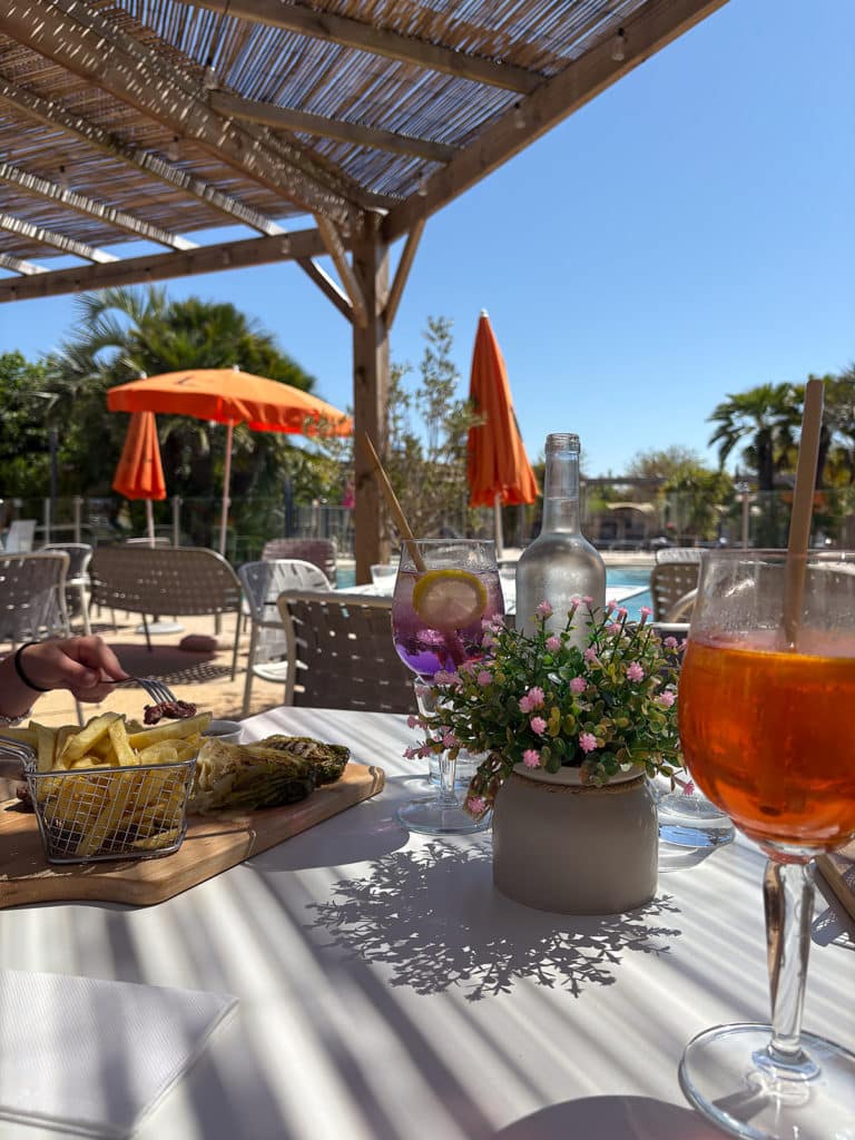 Our restaurant, near the swimming pool, offers a wide range of homemade dishes, pizzas, burgers and salads, to eat in or take away. You can also order from our rotisserie service. Sit at the bar to sip a cool drink or nibble on our delicious tapas.