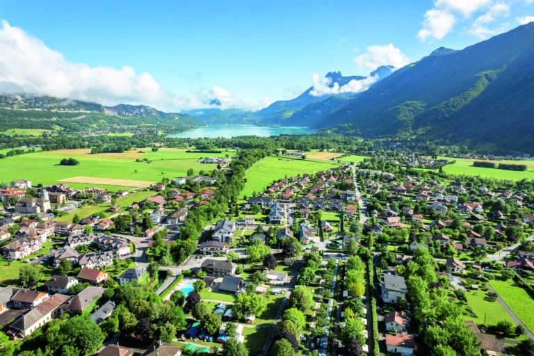 - À deux pas du lac d’Annecy, au camping La Ferme de la Serraz.